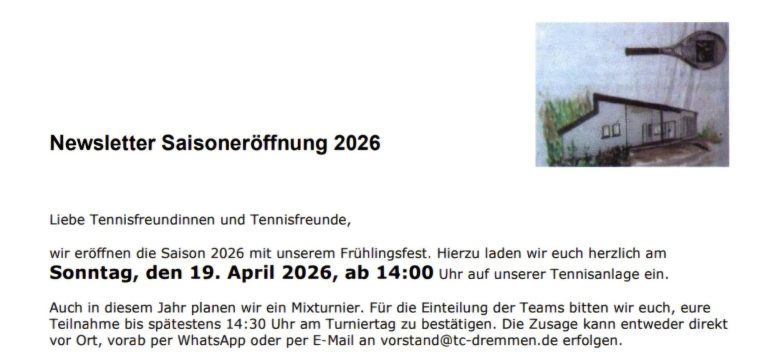 Frühlingsfest des TC Dremmen am 19.04. ab 14 Uhr